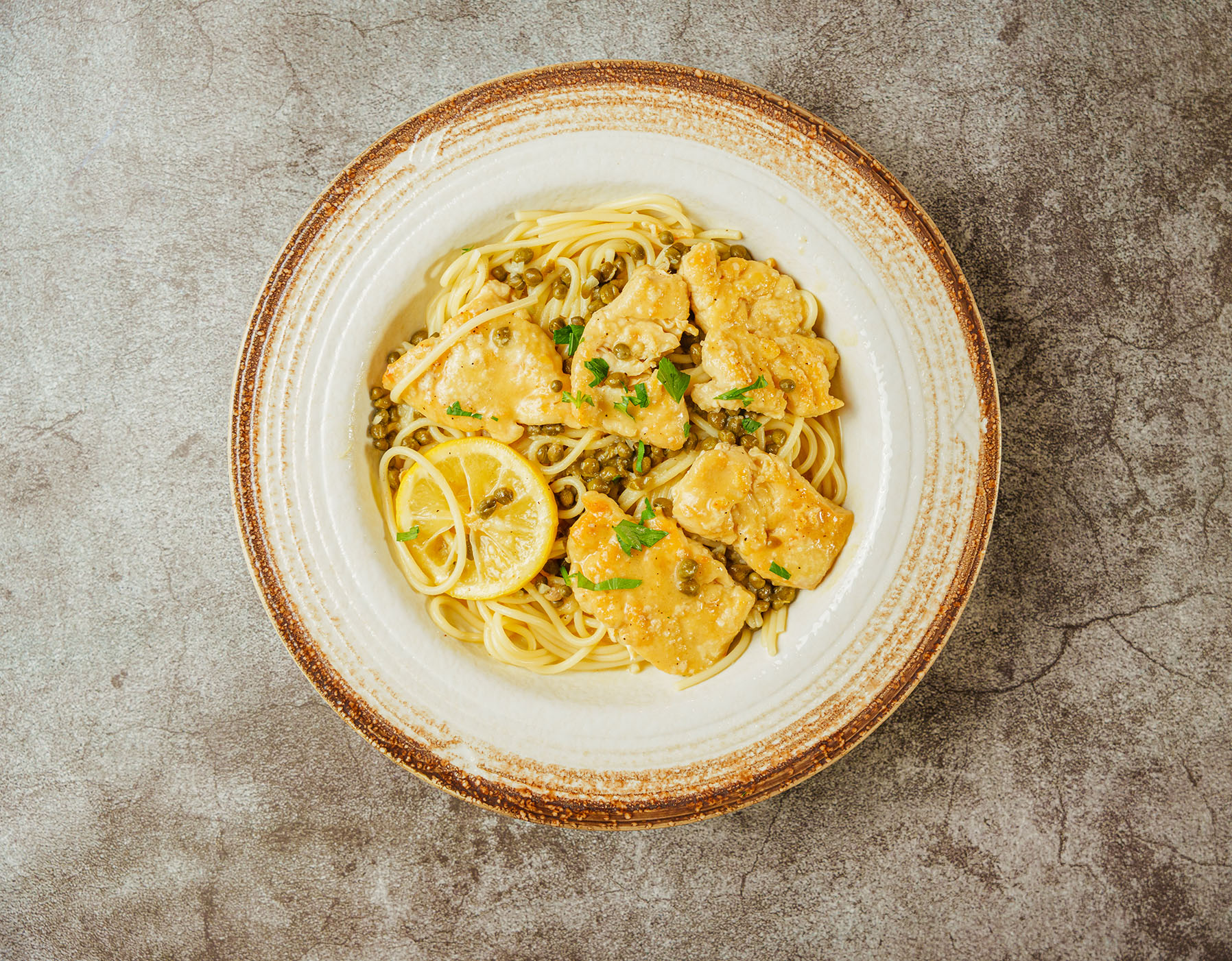 Sautéed chicken medallions with our lemon-butter caper sauce over your choice of pasta